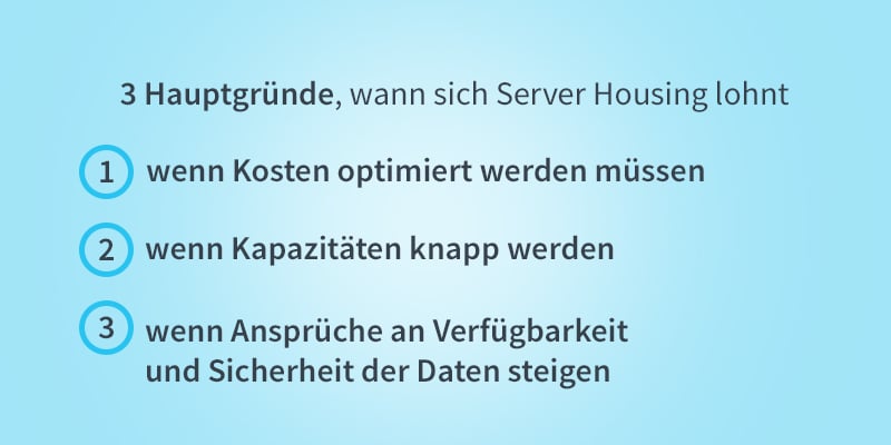 Die wichtigsten Gründe für Server Housing noch einmal zusammengefasst.